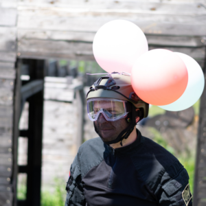 In addition to rifles, each player receives a helmet with three balloons attached (three balloons = three lives), protective goggles, a mesh face guard, and during the summer – a tactical vest.